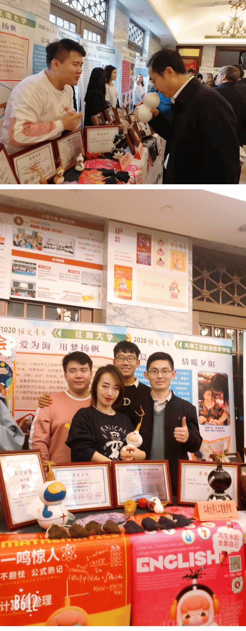 “小葫途—以爱为海,用梦扬帆”志愿服务项目在51所高校集中展示的60个项目中表现优异,好评如潮。项目负责人计算机1702班孙成龙同学荣获江苏省“博爱青春”优秀大学生志愿者,指导老师杜磊荣获“博爱青春”优秀指导教师。