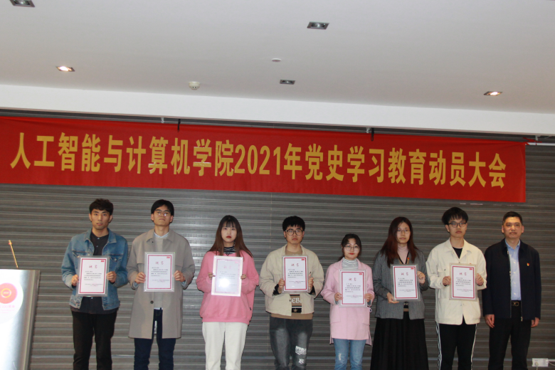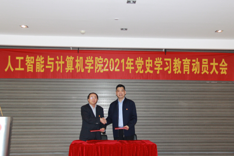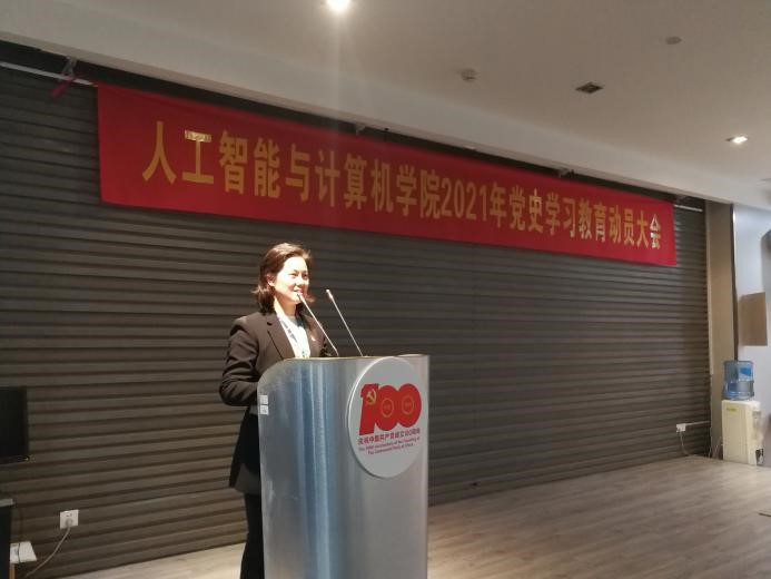于学院报告厅召开党史学习教育动员大会,对全院党史学习教育进行动员部署。中国计算机学会无锡分部秘书长卢惠林教授,马克思主义学院教授陈绪新,后勤保障系统党委副书记金明媚,后勤保障系统党委环境中心党支部书记吴湘娟,院党委书记、院党史学习教育领导小组组长张华及学院全体党委委员,师生党员代表出席会议,院党委副书记、院党史学习教育领导小组副组长陈祎主持会议。