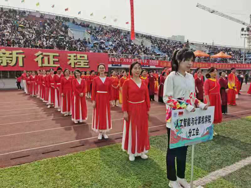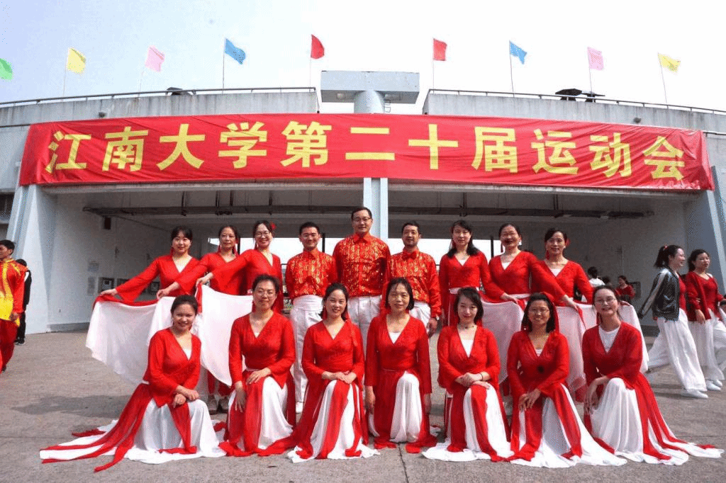的老师们身着颜色鲜亮的红白色纱裙,在赛场上显得格外突出;老师们整齐划一的动作、标准有力的舞姿,赢得了在场师生的阵阵掌声,无人机的镜头下记录下老师们意气风发的精神风貌。最终排舞比赛,老师们获得三等奖的好成绩。