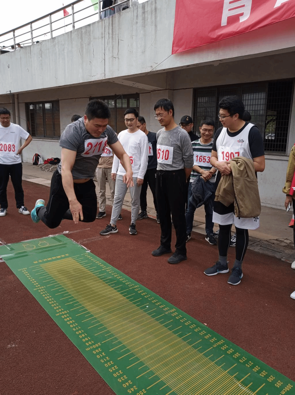 看,运动健将钱琨老师上午在100米赛道上飞奔,下午又在跳远比赛场上一跃而起。
