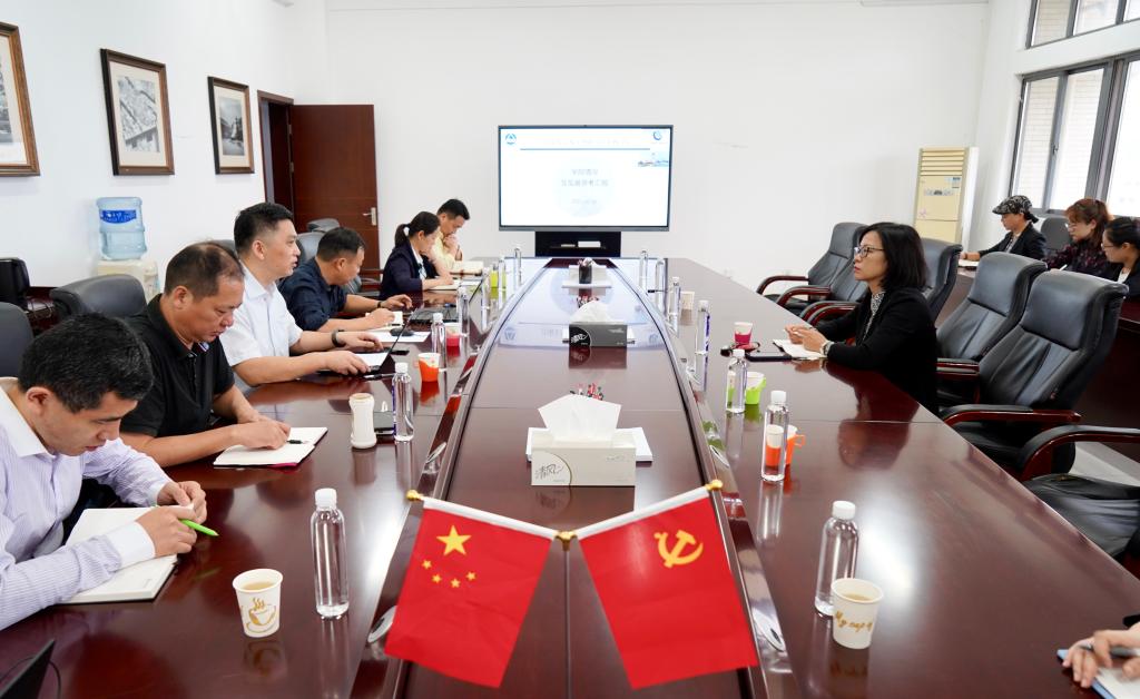 院长刘渊详细介绍了学院学科建设、人才师资队伍建设、教学、科研等基本情况,着重汇报了学院“十四五”期间的学科发展定位和建设重点。