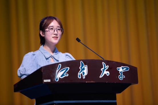 其后,刘渊院长宣读“智能之星”表彰决定并为“智能之星”颁发荣誉证书。吕天旭作为“智能之星”代表、在校生代表发言,他结合自己在江大的求学经历,分享了自身学习心得,并希望同学们能够在今后的学习生活中能够笑对改变、勇于尝试、勤于思考、进取奉献。