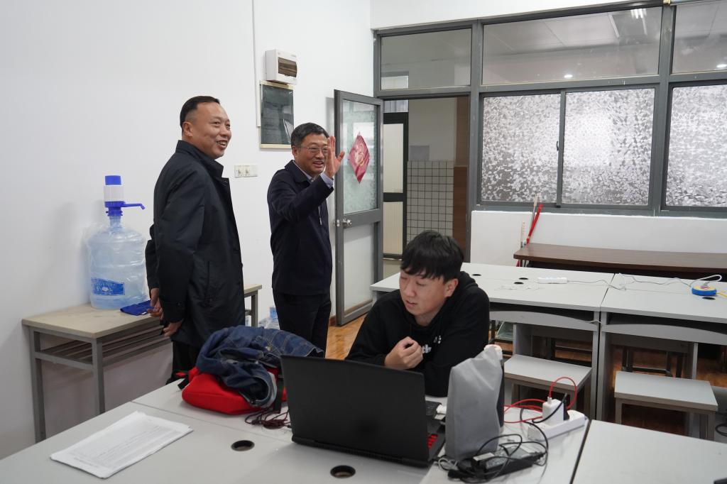 陈校长参观了大学生创新实践基地、实验室、办公室等,刘渊院长介绍了学院搬迁及安置情况。陈校长专门来到王士同教授和王映辉教授办公室,亲切看望了两位二级教授,并与研究生们进行交流,鼓励他们好好学习。