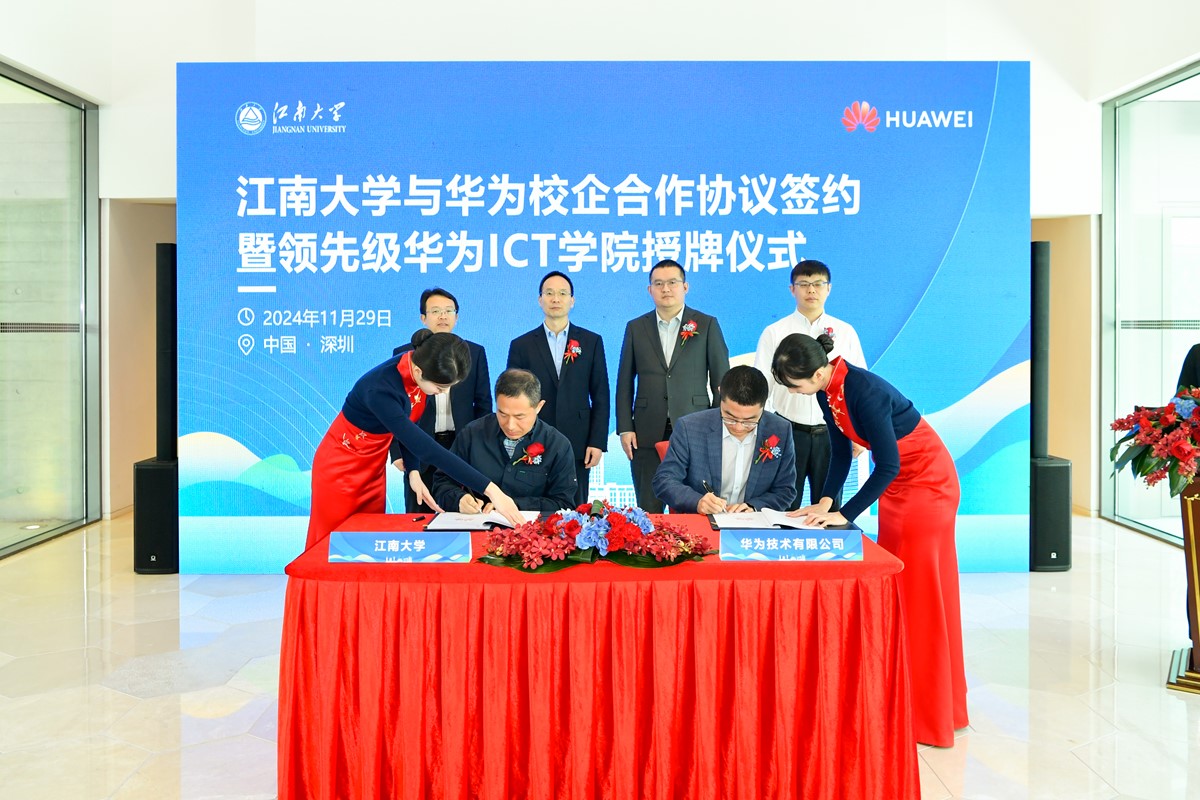 会上,方伟与华为江苏政企无锡业务总经理刘小斌共同签署《91porn 与华为技术有限公司深化校企合作协议》。堵国成与王新共同为91porn “领先级华为ICT学院”揭牌。