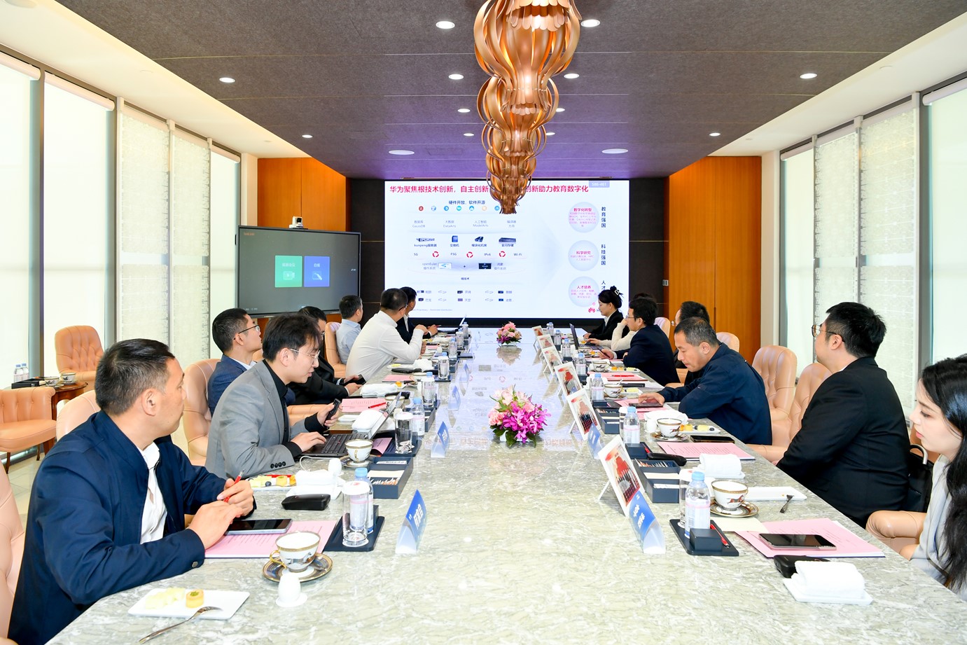 赵祎鑫对堵国成一行的到访表示热烈欢迎。他表示,华为通过产业融合、产教融合的创新人才培养模式,构建了开放合作共赢的人才生态。与教育部深度合作,建立智能基座产教融合协同育人基地,培养更多适配国产信创自主可控的人才。在人才培养和人才转化方面,采取双重驱动策略,建立了ICT学院、大赛人才双选、书籍和认证体系等一系列平台和项目。