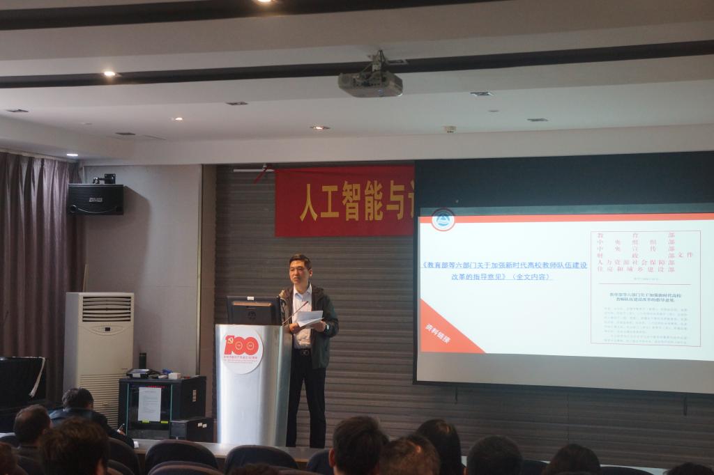 在116报告厅召开全体教职工大会,就全面从严治党、师德师风教育等工作进行了学习和部署。会议由学院党委书记张华同志主持。