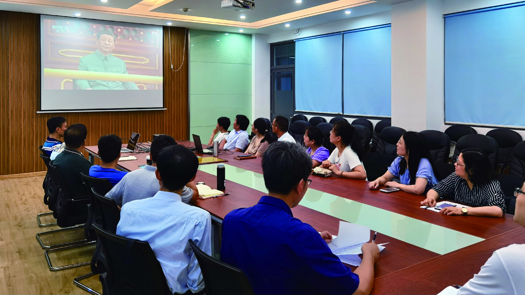 全体师生党员分五个分会场,怀着激动的心情全程观看了直播。直播结束后,各党支部随即召开支部会议,热议习近平总书记在庆祝大会上的讲话。