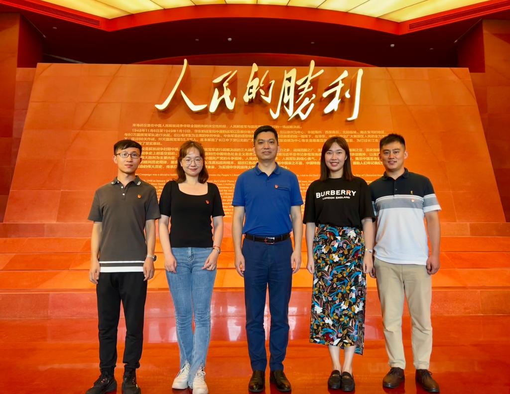 学院一行首先参观了淮海战役烈士纪念馆,该馆是为了纪念在淮海战役中牺牲的烈士所建立的,新馆于2021年7月1日正式对外开放,纪念馆拥有藏品2万余件,主要为淮海战役期间的纸、布、铁、皮等质地的文物和历史图片、史料及国家领导人、社会知名人士的题词、书画作品等。学院一行重温了淮海战役这一次解放战争战略决战的三大战役中规模最大的战役,并对先烈进行了缅怀。