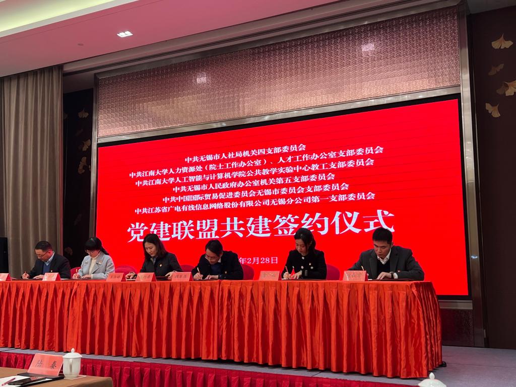 公共教学与实验中心教工党支部,无锡市人民政府办公室机关第五党支部,江苏省广电有线信息网络股份有限公司无锡分公司第一党支部共同发起的党建联盟共建签约仪式,并聆听了马克思主义学院唐忠宝教授的主题讲座。