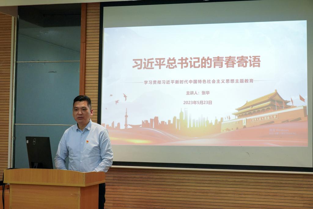 张华从习近平总书记与青年朋友、习近平总书记历年高校考察、习近平总书记历次给大学生回信三个方面讲述了习近平总书记与广大青年的故事。张华与支部全体党员共同回顾了习近平总书记对于青年朋友的寄语,习近平总书记非常关心青年成长,多次来到青年中间,同大家推心置腹谈理想信念、谈人生价值、谈奋斗奉献,号召广大青年把对祖国血浓于水、与人民同呼吸共命运的情感贯穿学业全过程、融汇在事业追求中。最后,张华强调要深入开展学习贯彻习近平新时代中国特色社会主义思想主题教育,在实践中牢牢把握“学思想、强党性、重实践、建新功”的总要求,着力抓好“九个一”活动,扎实推动主题教育走深走实。他勉励智能学子要以学为主,做刻苦学习、锐意进取的智能学子;要善人善工,成为善良的人,品德高尚的人,成为善于做一门技术的人;要创智创能,敢于创新创造智慧,为国家社会发展赋能贡献自己力量;要牢记习近平总书记对青年的谆谆教诲,不负韶华,不负时代,不负人民,以奋斗姿态激扬青春、追逐梦想。随后,张华全程参加了党支部党员发展大会,并对与会党员同志提出三点期望,一是要牢记党员身份,充分发挥党员先锋模范作用;二是要做好自己的本职工作;三是要严把党员发展程序,实事求是,严肃认真对待每一项发展环节。