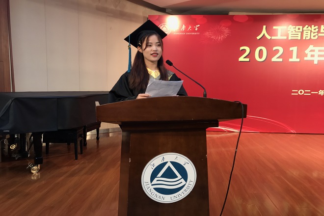 典礼开始前,全体师生观看了毕业生拍摄的视频,视频记录了毕业生们美好的大学时光。随后,毕业班代表带来《再看一眼我们相遇的康桥》朗诵,表达了毕业生们对母校真挚的情谊。