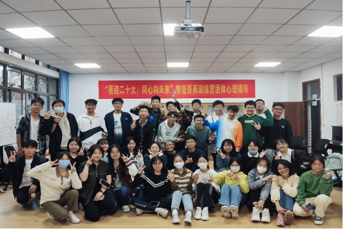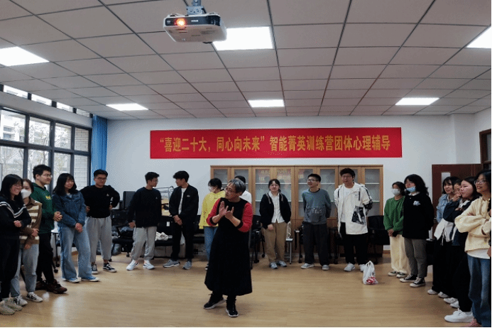 校医院副主任医师、国家二级心理咨询师沈力晔老师在学院团体辅导室开展“喜迎二十大,同心向未来”智能菁英训练营团体心理辅导,我院心理辅导员杨玉莹以及2022级本科班长、团支书和心理委员共36名菁英训练营成员参与本次团辅。
