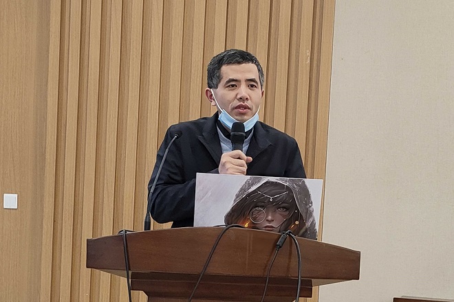 2021-2022学年“智能之星”答辩评选会在图书馆305报告厅举行。学院党委副书记、副院长陈祎,副院长谢振平,数字媒体技术系主任邓赵红,人工智能系主任宋威,教授代表王士同、毛力,班主任代表陈璟,分团委副书记陆恒杨、杜磊,全体辅导员及部分学生代表出席活动。