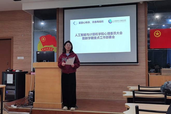 3月21日,学院心理辅导员杨玉莹召开本学期心理委员大会,强调了春季学期心理委员工作的重要性、工作原则以及工作方法,并布置了本学期的主要工作。一是夯实心理危机识别与干预工作,提高心理周报、月报质量;二是充分发挥班级心理育人作用,重点打造学院“‘智’到遇见你——朋辈团体心理辅导”心理品牌活动;三是以“重塑心秩序,青春再启航”为主题,结合“5.25我爱我”心理健康日开展特色心理健康教育活动。