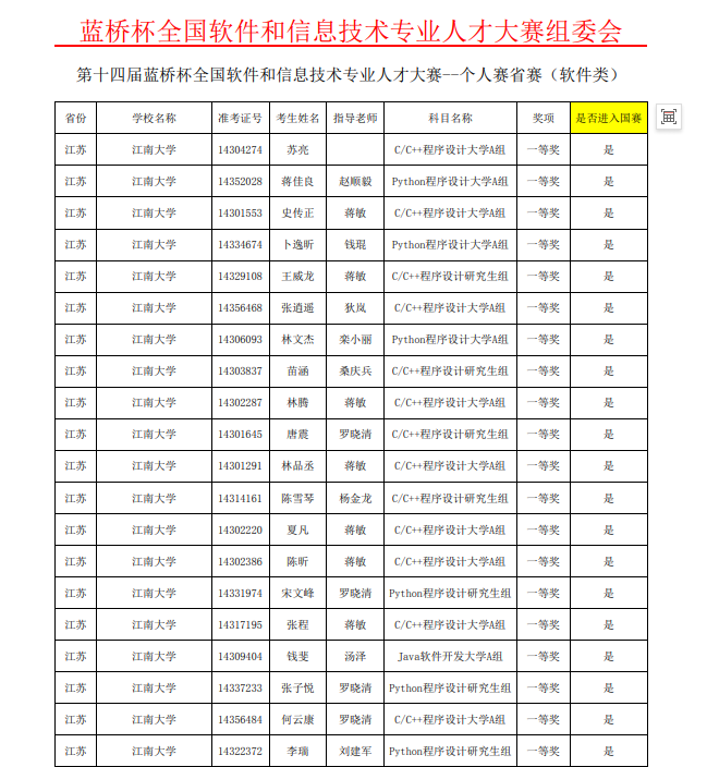 近日,第十四届“蓝桥杯”全国软件和信息技术专业人才大赛个人赛江苏省赛落下帷幕,大赛吸引来自南京大学、东南大学、南京理工大学、苏州大学等众多高校的选手同台竞技。我校学子在比赛中沉着冷静,出色发挥,91porn