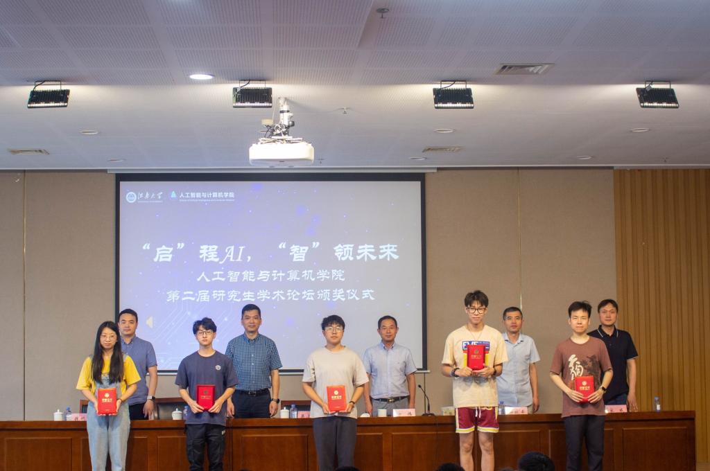 教授钱鹏江、教授陈丽芳、副教授周浩杰、副教授陈璟出席担任评委,研究生共计100余人现场学习聆听。最终,经论坛组委会初审、学生汇报答辩、专家评审,两个板块共评选出一等奖2人,二等奖5人,三等奖5人,开幕式上与会嘉宾为获奖同学颁发证书并合影留念。