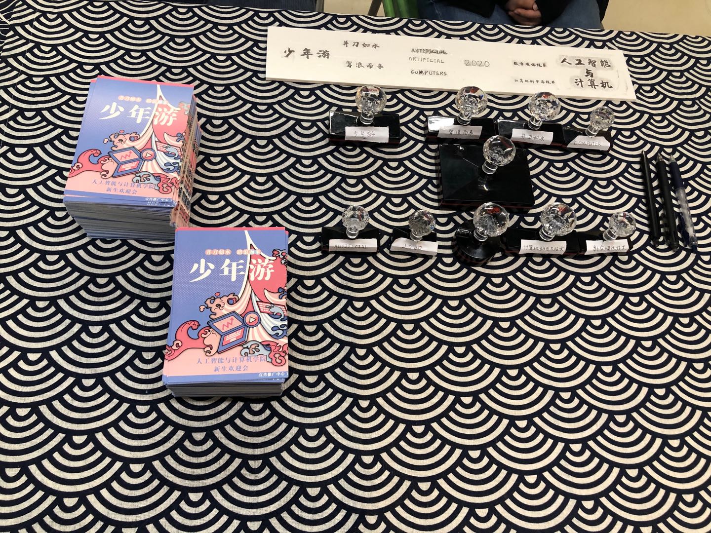 为了让新生们在最短的时间内融入大学生活,学院结合自身特色,制作了“创意礼物”,给新生们留下了深刻印象:学院艺术团利用抖音平台开展“‘数’说你的青春,‘计’住你的笑脸”新生报到直播,全景展示新生报到流程;“人工智能2020”迎新特刊带领新生走遍无锡,畅游校园,开启智能“新篇章”;“我是智能小萌新”系列合照手牌,留下新生第一份属于智能的回忆;送给小萌新的礼物--“并刀如水,驾浪而来”少年游帆布袋、印章、明信片等系列定制文创产品,为新生营造了浓厚的仪式感。