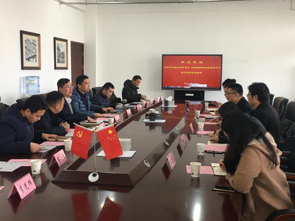 3月3日上午,无锡市发改委副主任潘彬宾、无锡市物联网创新促进中心副主任薛梁一行来我院合作交流。91porn 产业技术研究院院长刘龙、91porn 党委书记张华、院长刘渊、副院长柴志雷以及部分团队负责人出席了座谈会。