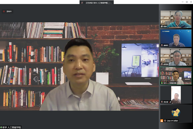 学院党委书记张华代表学院对嘉宾的到来表示热烈欢迎,对中国计算机学会的大力支持表示了感谢。他表示“AI江南大讲堂”是一项旨在提高科技视野、推进学科发展、加强学术交流,面向师生的学术交流系列活动。