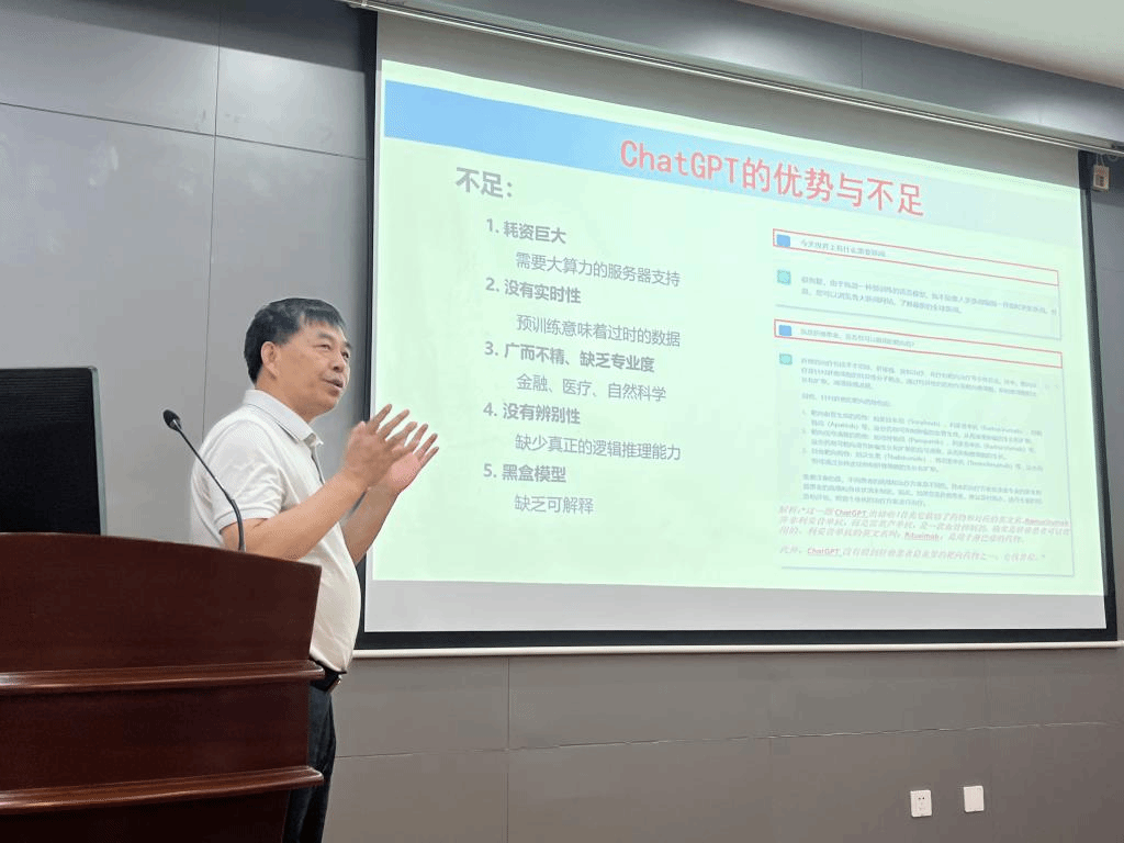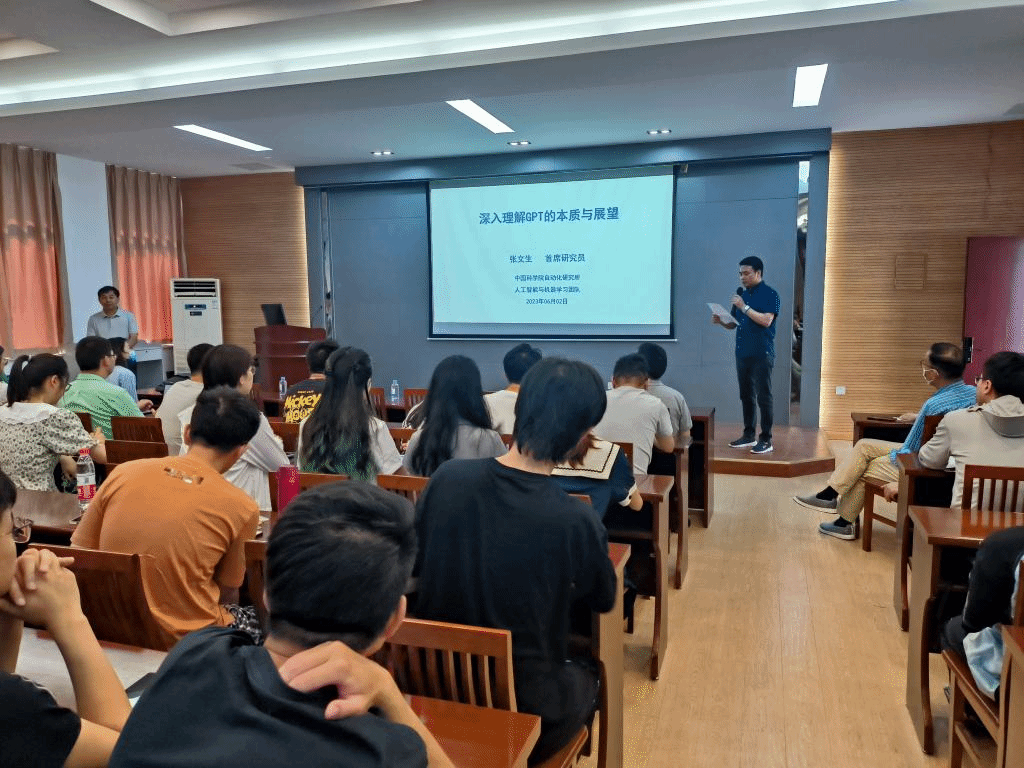 特邀请中国科学院自动化研究所研究员、副总工程师、中国科学院大学人工智能首席教授张文生作主题为“大模型GPT研究热潮与思考”的学术讲座,学院副院长钱鹏江主持本次活动。