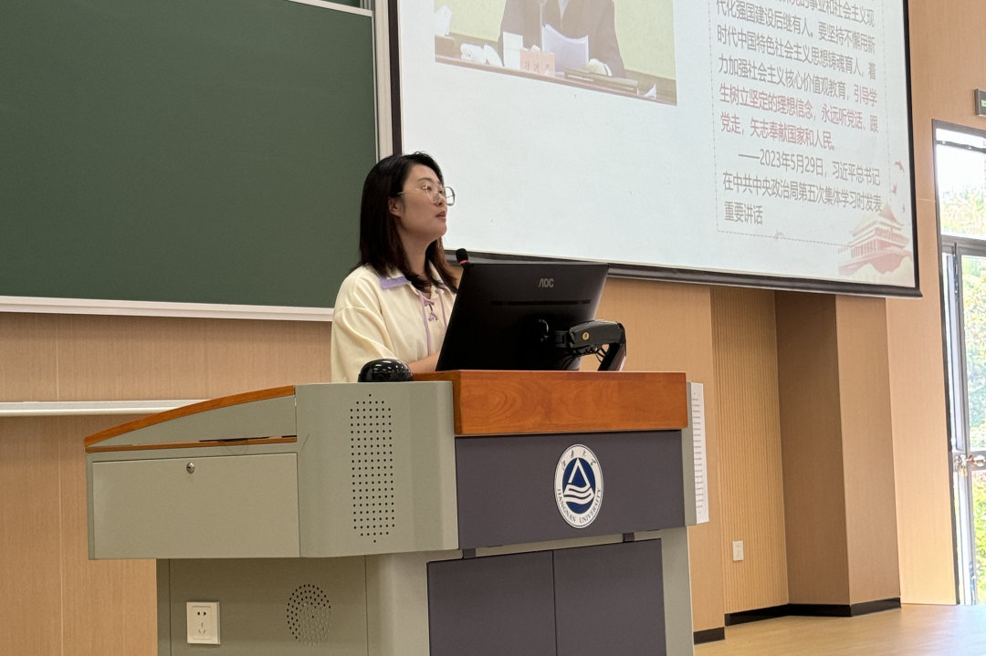党建铸魂,信仰启航。杨玉莹围绕“为什么入党、入党能收获什么、入党流程”三方面内容对党的基本理论知识进行了讲解,突出学院“党建带团建、团建促党建”的鲜明导向,进一步提升新生的思想政治素养。她引导新生树立正确的入党动机,不断以党的创新理论武装头脑,提高全心全意为人民服务的意识,沿着党旗指引的方向砥砺前行,让青春为中国式现代化挺膺担当。