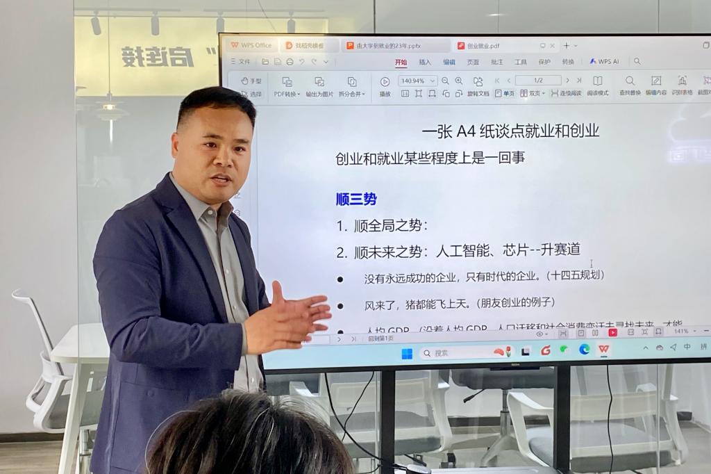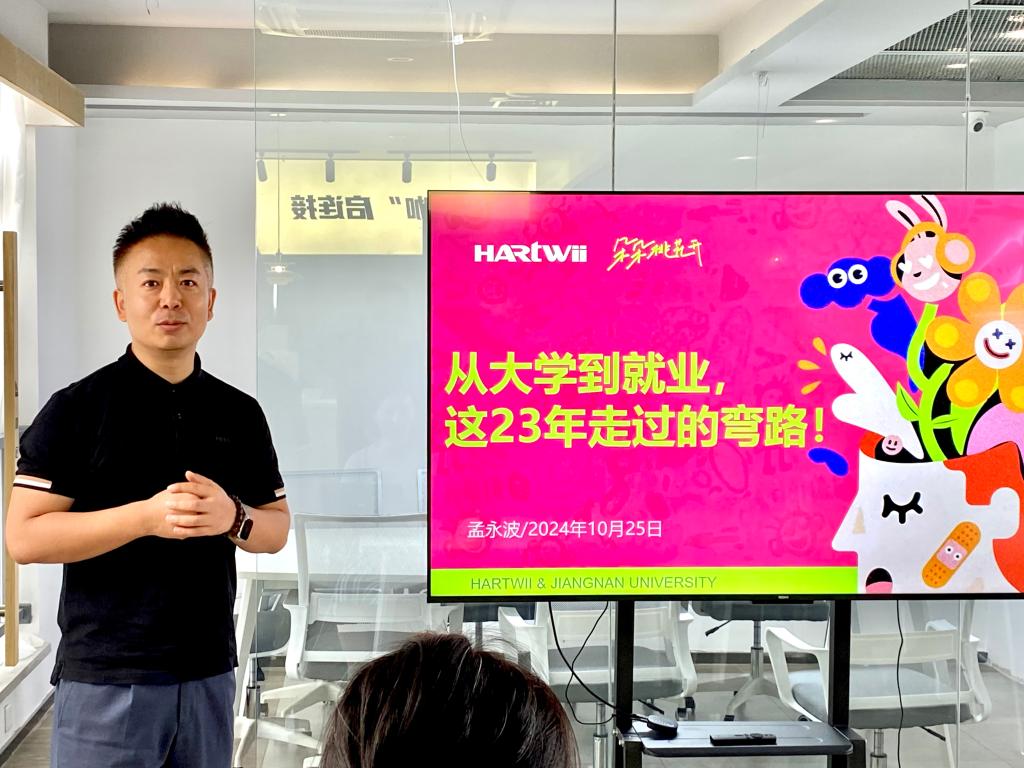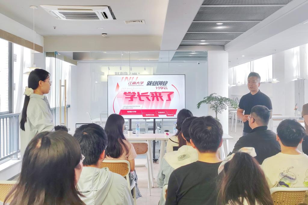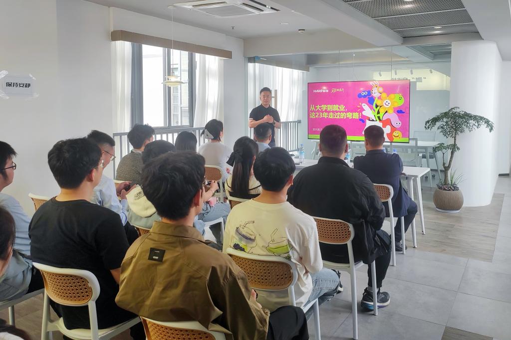 孟永波以“从校园到社会:我的创业十年”为主题,分享了品牌创立初心与成长历程。他结合自身经历,鼓励同学们在求学时期保持好奇心,在不断试错中积极寻找正确方向。杨松以“跨界创新与职业选择”为题,全面解析了人工智能行业发展趋势,提出“终身学习”是应对未来的关键能力,引发在座学生的交流与思考。