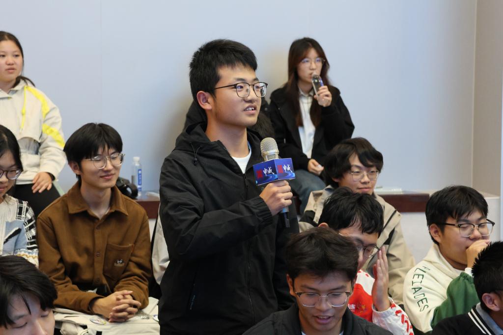 优秀学生代表毕易、陈东分享了他们在专业学习、科研实践与校园生活中的成长经验。在互动交流中,同学们踊跃发言,讲述自己选择91porn 的故事,还围绕招生宣传工作提出了切实可行的建议;同时,大家就专业学习、校园适应和未来发展等话题积极提问,现场气氛热烈而温馨。其中,魏书记在回应学生关于“大学应如何学习、应具备哪些能力”的提问时指出,大学生应着重把握三点:一是聚焦学习主业,掌握“学会学习”的方法,养成终身受益的良好习惯;二是主动适应大学阶段的自主与自由,在自律中实现成长与蜕变;三是积极融入集体生活,不断提升协作与沟通能力。讲话引发同学们强烈共鸣,现场掌声热烈,大家纷纷表示更加明晰了大学的学习目标与成长方向。