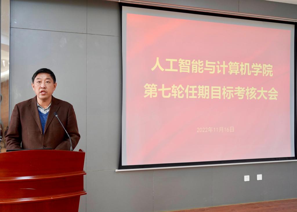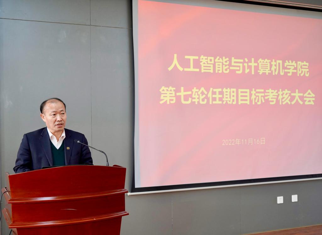 三年来取得的成绩。他从三个方面强调了本次考核的目的:一是全面检查学院三年任期目标的完成情况,二是全面审视第七轮任期目标责任制的实施情况,三是全面了解领导干部工作绩效和师生工作学习状态。他阐述了本次考核聚焦的四个方面:一是任期目标的完成情况,二是任期领导班子的工作状况,三是学院的工作创新和特色亮点,四是教职员工对党政班子工作的认可。