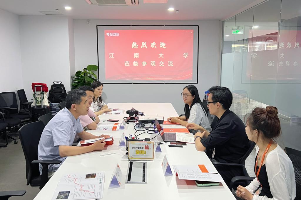 、人才培养等方面进行介绍,他表示期待和南京东方财富探索建立长期合作发展模式,将高校理论知识优势与企业实践优势充分结合,为企业发展打造高质量人才梯队。钱鹏江介绍学院近年来各专业招生就业的基本情况,并畅谈校企双方开展合作的可行方向和实施路径。他指出,深入挖掘学院与企业合作路径,发挥校企各自优势,促进校企资源共享,有利于双方实现优势互补、互利共赢。