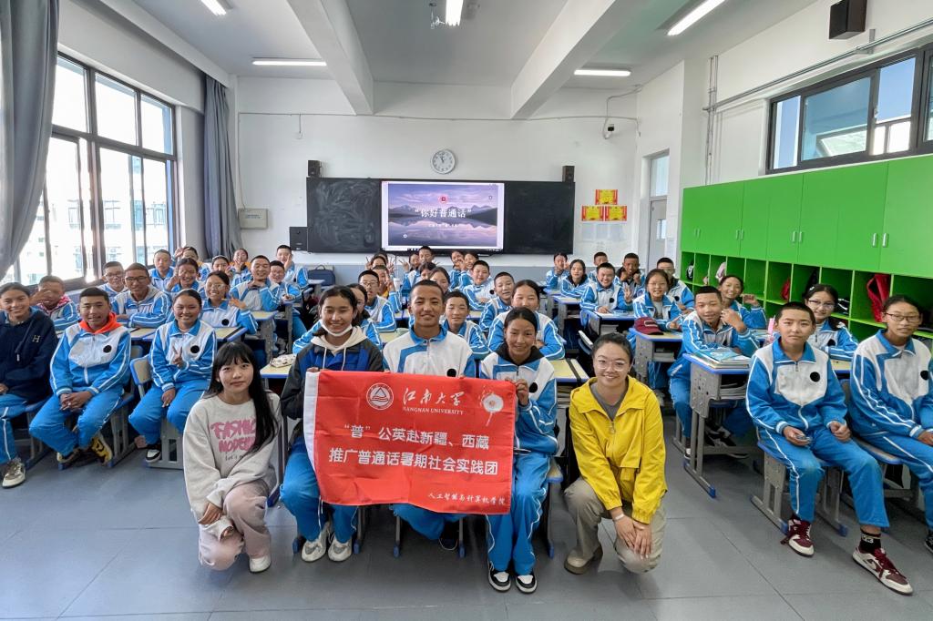 举办内地西藏班是党和国家加快培养少数民族和民族地区各类人才的重大战略决策,是贯彻落实党的教育方针和民族政策的创新实践。为激励青少年知党恩、听党话、跟党走,学好普通话,实践团成员旦珍向同学们普及内地西藏班的招生政策,强调了普通话在求学生涯中的重要性。在互动交流中,一个小朋友站起来说到:“老师,你们好厉害啊,我也要去上内地西藏班,我也要上大学,我要走出去看看江南是什么样子!”就这样,一个个小小的情怀与梦想在雪域高原慢慢生根发芽……