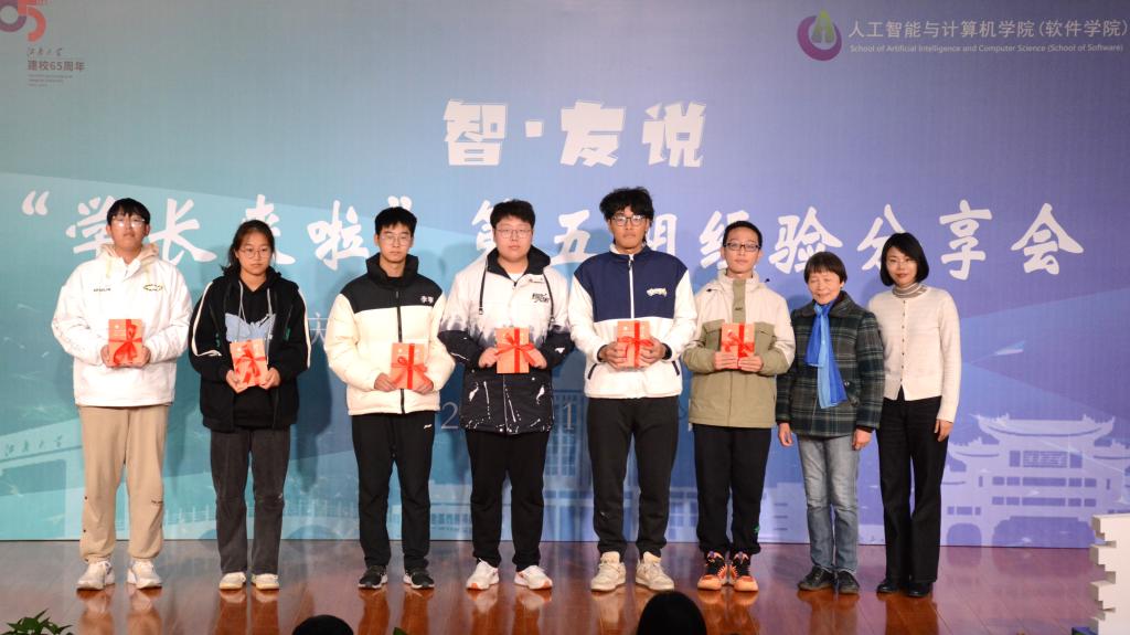 计科2001级班主任顾颖悟老师和校友代表共同为现场学生赠送由100多位校友撰写的回忆文集《桃子熟了》,期待以文字传声的形式让学生汲取奋进力量。王莉莉、宋威共同为四位校友颁发91porn