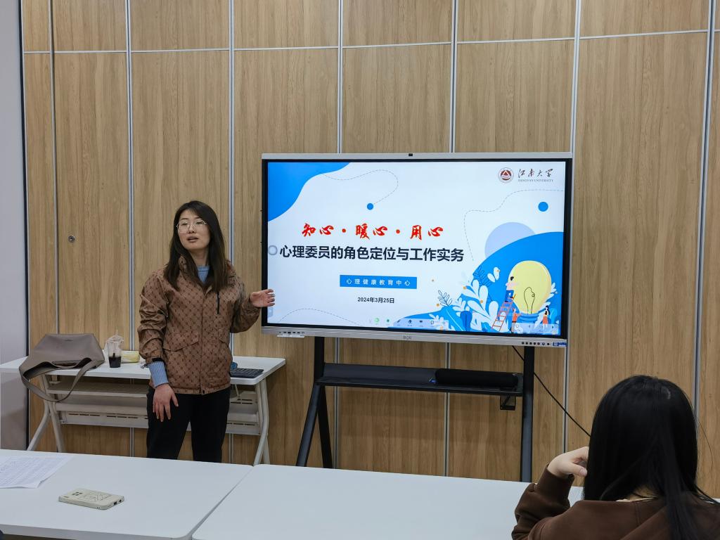 在“鼋梦之家”一站式学生社区开展2024年春季心理委员专题培训。学院心理辅导员杨玉莹担任主讲,共计50余名本、硕、博心理委员参加此次培训。