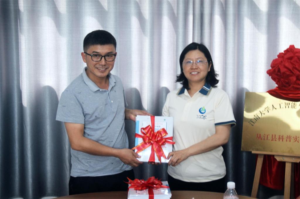 随后,双方领导共同为从江县科普实践基地揭牌。陈璟向石永成校长赠送100本少儿编程相关书籍,并在仪式后面向独洞小学高年级学生讲授少儿编程科普第一课。