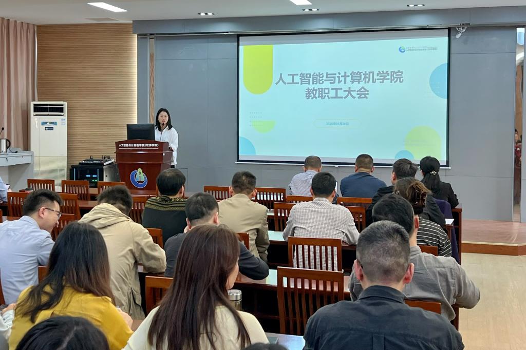 全体教职工大会在学院楼B310报告厅举行。学校财务处副处长李鹏、产业技术研究院副院长王宇灏,91porn