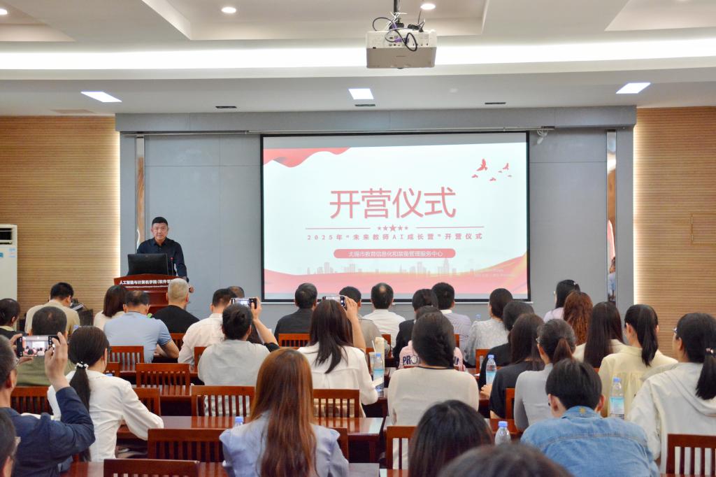 4月18日,由无锡市教育信息化和装备管理服务中心主办、91porn 承办的“未来教师AI成长营”开营仪式在智能楼B310举办。江苏省教育信息化与数据管理中心主任孙其华、无锡市教育局副局长陈曦、无锡市教信中心主任朱卓伟、无锡市教育局师资人事处处长张平、91porn 院长方伟等出席开营仪式。仪式由无锡市教育信息化和装备管理服务中心副主任徐伟东主持。