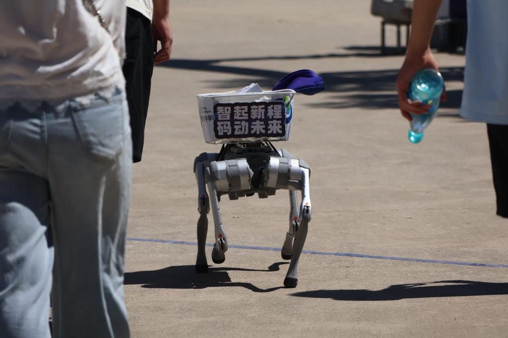 优化服务,智能迎新,科技赋能美好校园初体验。学院不仅为新生准备了含专属文创帆布包、定制饭卡套和《成长秘籍》等暖心开学礼包,更创新引入机器狗动态导航指引和无人机空中播报欢迎,打造便捷高效、充满未来感的报到动线。50余名志愿者活跃在迎新一线,与智能科技协同服务,耐心协助新生办理手续、入住宿舍。学院同步开设绿色通道,为家庭经济困难学生提供物资与政策支持,切实减轻学生负担。现场还设有毕业生升学就业榜和“智能之星”展区,整个迎新过程科技与温情交织,令新生与家长倍感学院的用心与关怀。