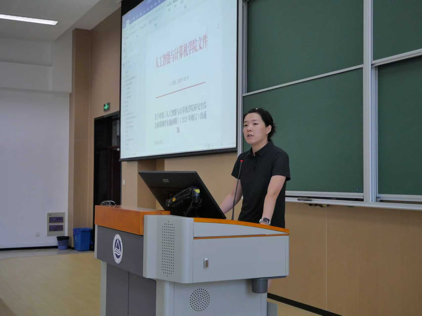 张海月就“研究生综合测评”进行了专题解读。她从综合测评的整体评价体系框架入手,系统介绍了“学业成绩”“学术科研”和“学术交流”三大核心板块的具体权重,并逐一说明了各项评分标准及所需佐证材料。张老师鼓励同学们在专注学术科研的同时,积极参与各类实践活动,全面提升综合素养,为个人长远发展夯实基础。